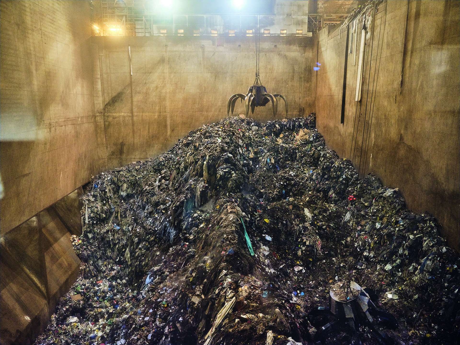 能源|哥本哈根一座新焚化爐的垃圾坑容量達2萬2000公噸。自動化起重機會攪拌垃圾,讓焚化爐燒得更乾淨。過濾燃煙的設備占據焚化廠內部的大半空間。相對於垃圾掩埋場,可以乾淨燃燒、產生能源的焚化爐,對垃圾來說是比較好的去處──但是循環經濟的目標,卻是以完全不會產生垃圾的方式來終結垃圾。攝影:盧卡.洛卡泰利 LUCA LOCATELLI