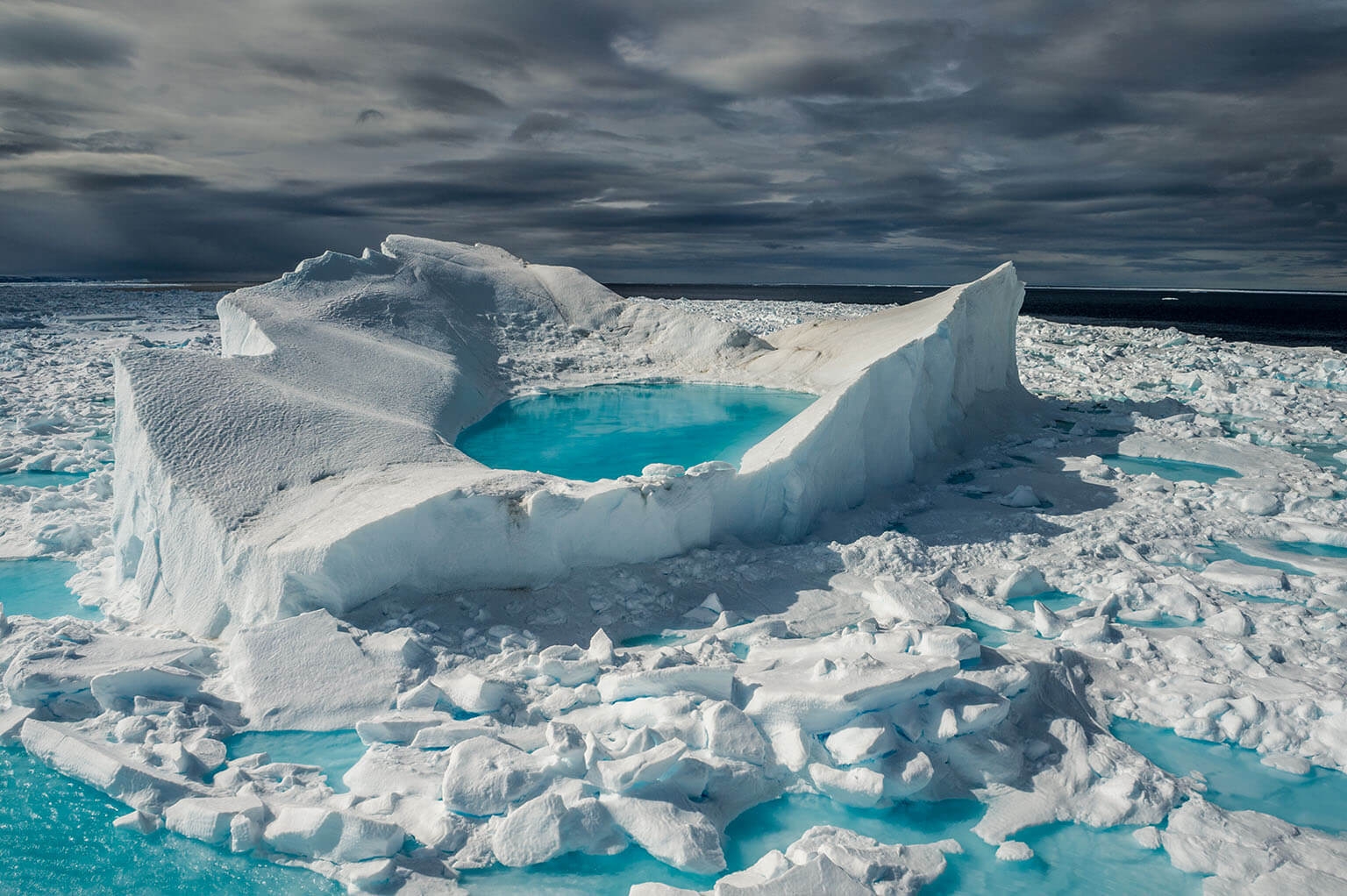 獨角鯨聚集在巴芬島外的蘭卡斯特峽灣。牠們會在覆滿海冰的水域中度冬,以庸鰈為食。螺旋狀的長牙是可以長到超過2.5公尺的犬齒,可能是用來吸引雌鯨注意,雌鯨身上很少見到長牙。 PAUL NICKLEN, NATIONAL GEOGRAPHIC CREATIVE