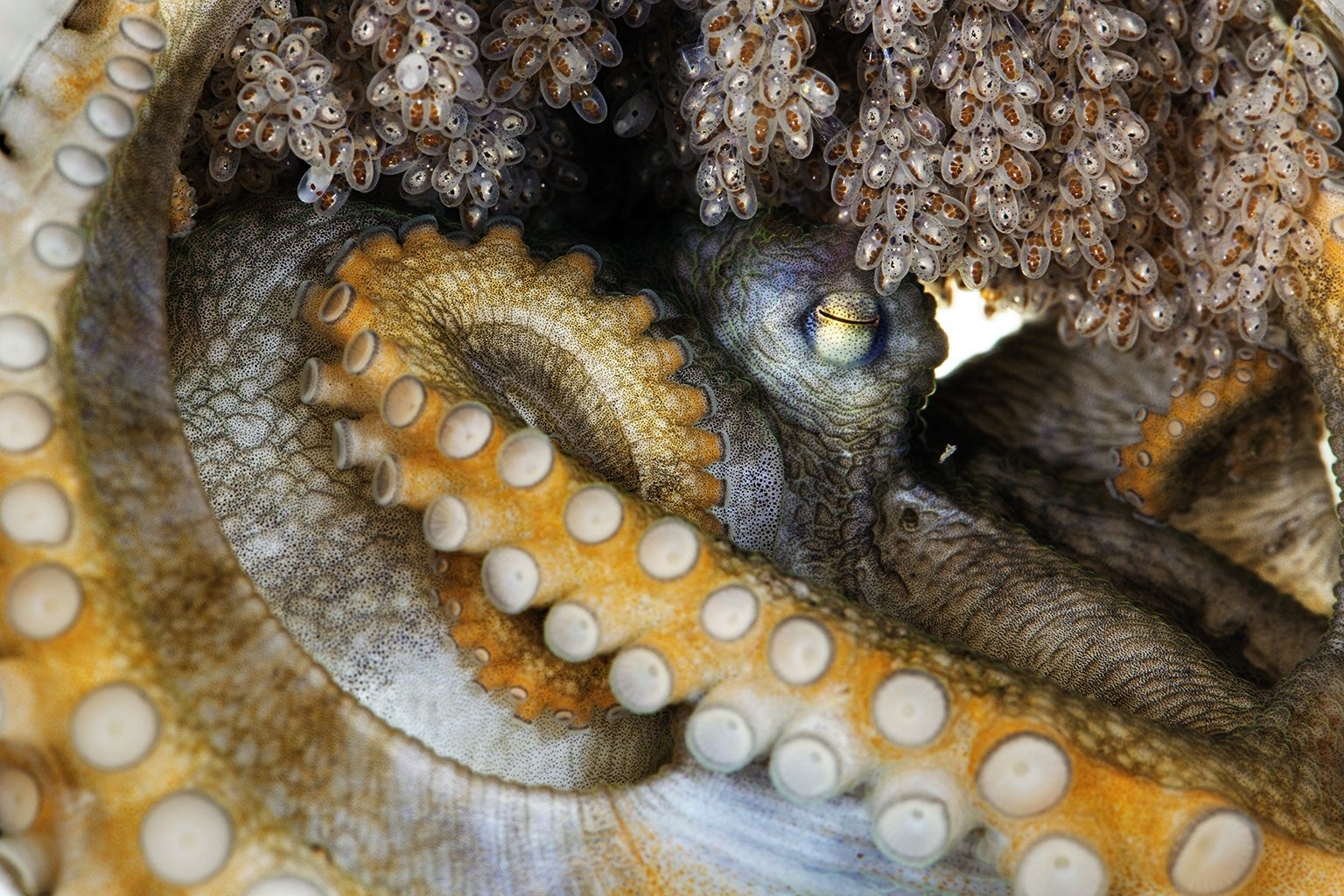 章魚的種類多得驚人,棲地橫跨熱帶到極區的海洋。斑馬章魚(Wunderpus photogenicus)生活在印度洋和太平洋的溫暖淺水域。PHOTOGRAPHED AT CALDWELL LAB, UC BERKELEY