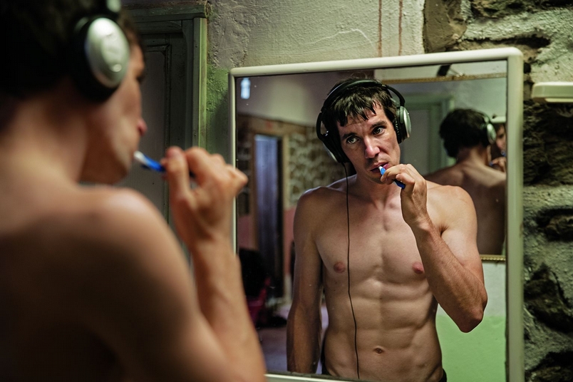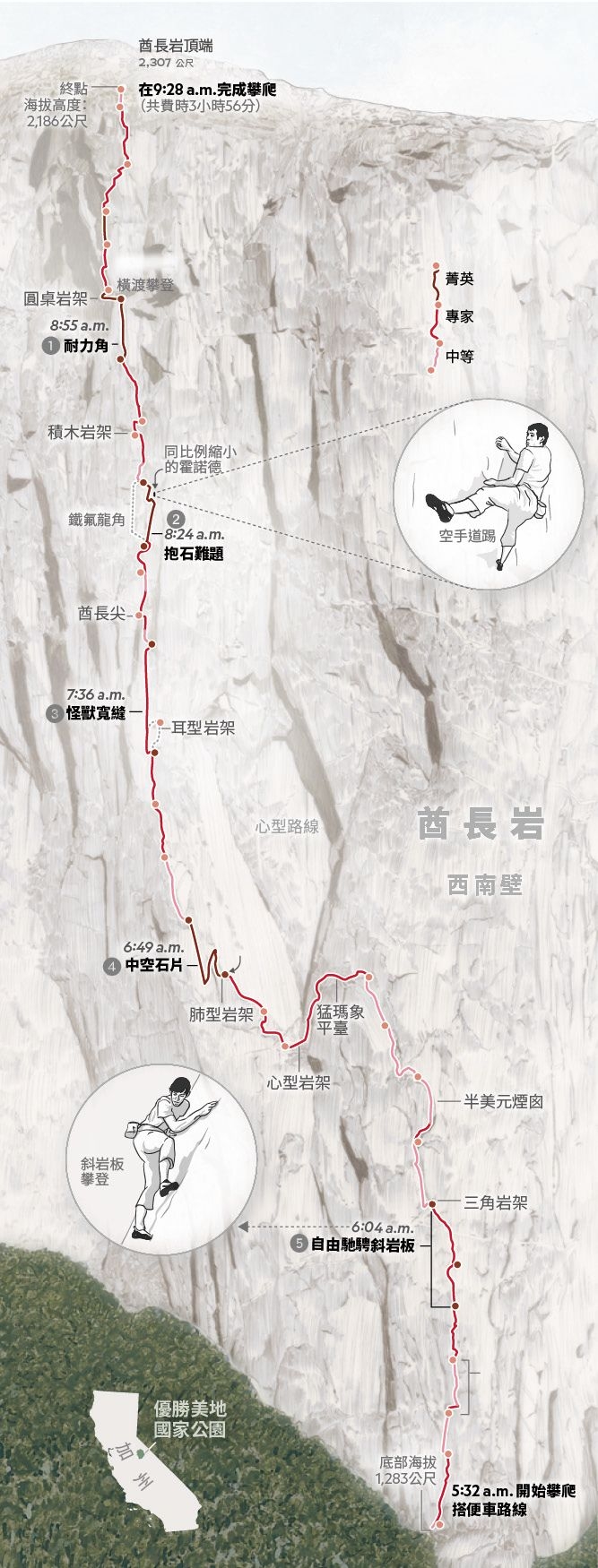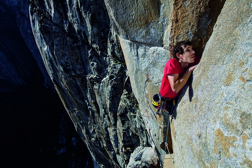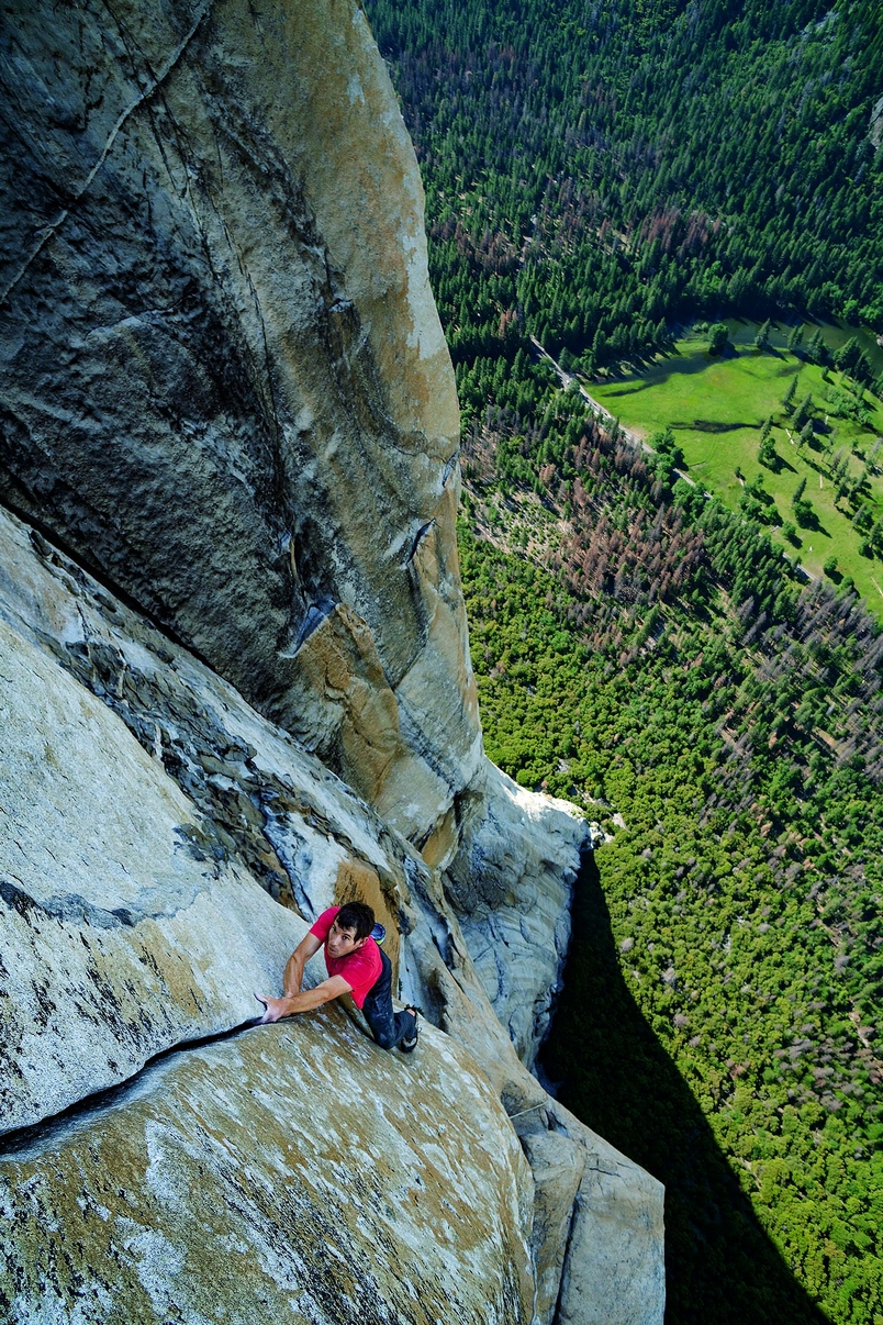 艾力克斯.霍諾德僅靠指尖和兩條細窄的橡膠鞋緣抓附在花崗岩壁,嘗試專業攀岩者長久以來認為不可行之事:徒手獨攀世界最著名的懸崖。」