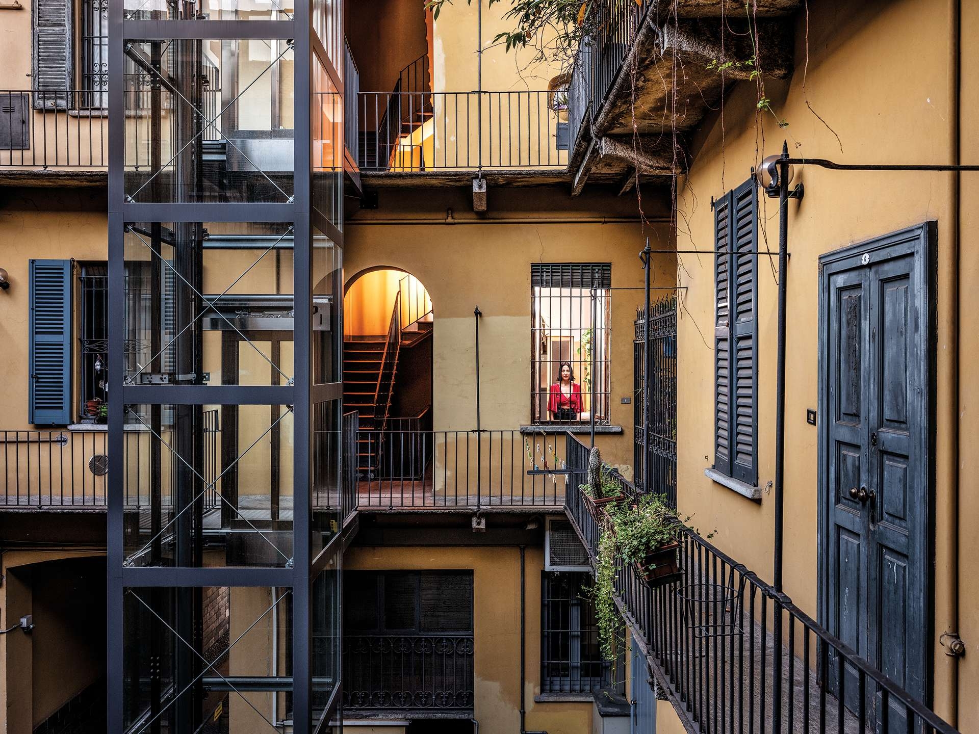 封鎖期間,莉貝卡.卡薩雷居住的米蘭夜店區一片空寂。「我很寂寞。」她說:「寂靜和空蕩蕩的空間讓一切顯得好不真實。」攝影:加布里爾.卡林伯迪