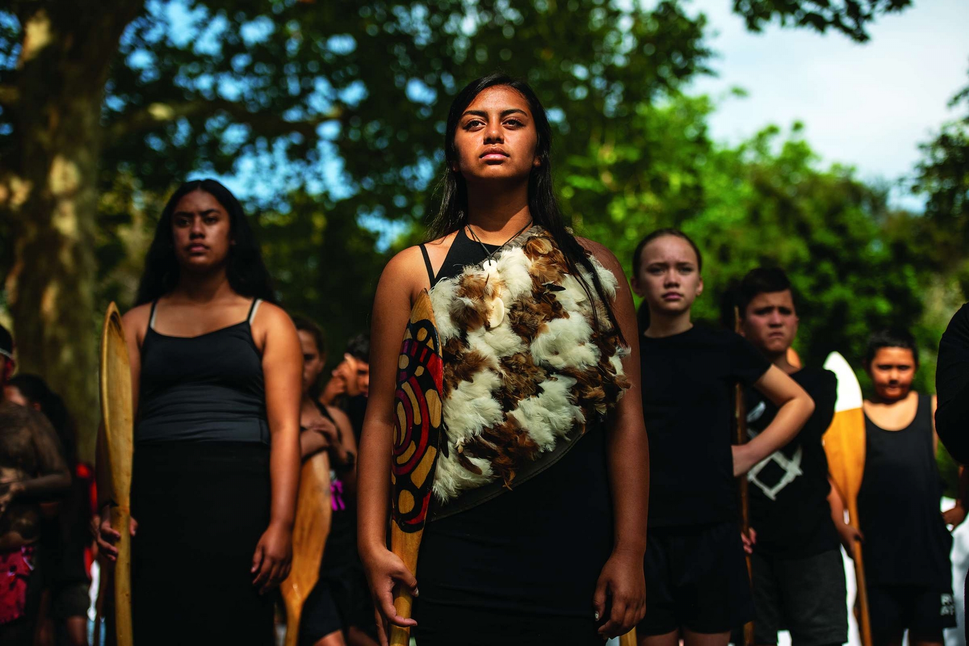 紐西蘭 16歲的布朗溫.克里夫德和其他毛利族女性站在一起,慶祝懷唐伊日,紐西蘭會在每年2 月的這一天,紀念由大約500名毛利酋長與英國人在1840年簽訂的《懷唐伊條約》。在英國19世紀殖民期間,毛利人失去許多祖傳的土地。今日的毛利女性利用社群媒體來動員民眾支持原住民土地權與其他改革方案。 PHOTO: ANDREA BRUCE