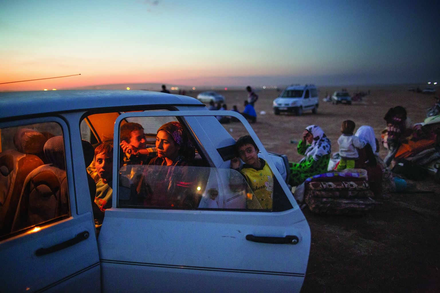 為了逃離伊斯蘭國的進逼,一個庫德族家庭逃出敘利亞後,在車中等待前往土耳其。2014年9月,有15萬名敘利亞人(大多是庫德族)花了72小時的旅程抵達土耳其。約翰.史坦邁爾 JOHN STANMEYER