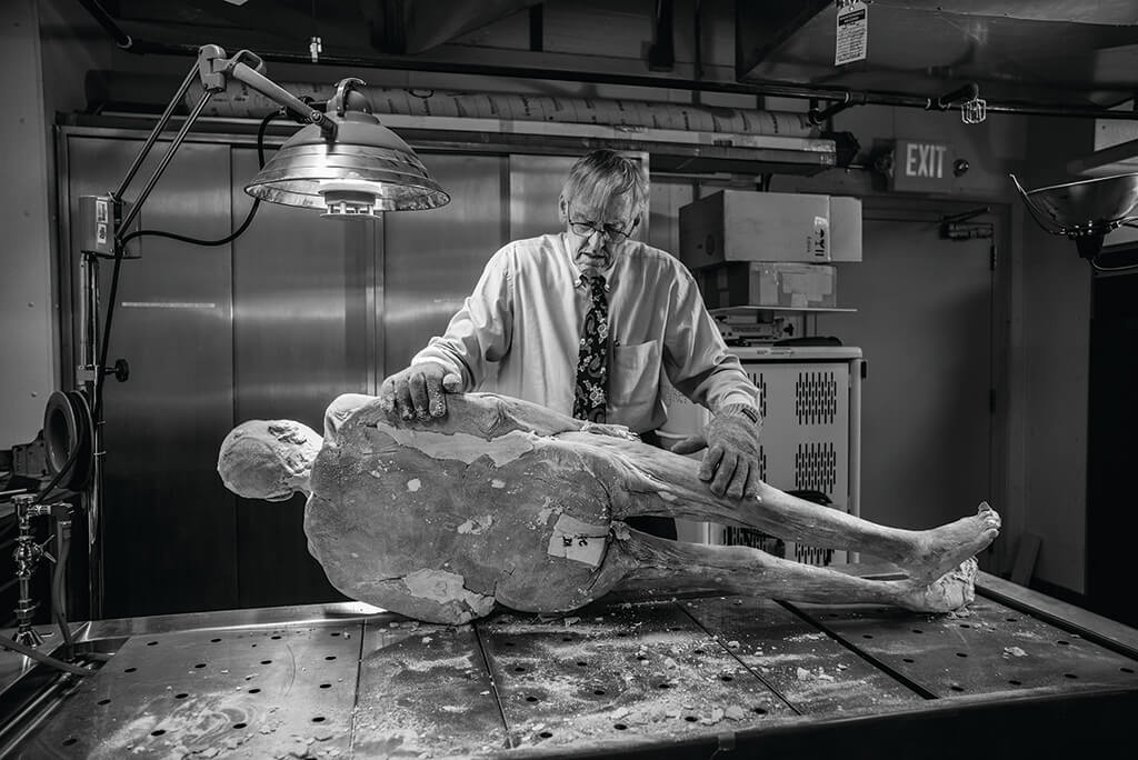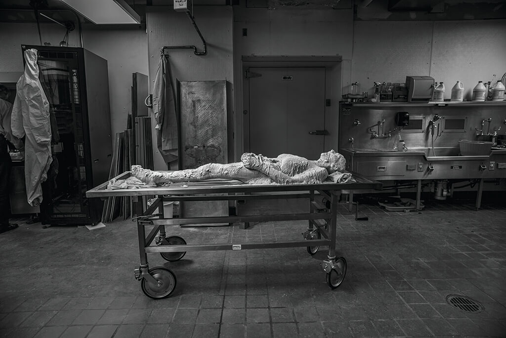 2015年3月,在死後生命的第一個階段,波特躺在實驗室裡全身用聚乙烯醇膜裹著,接下來她會被冰凍保存在攝氏零下26度,再被切割成2萬7000片切片,最終以數位化大體的形式復活。她把遺體捐給科羅拉多大學安舒茲醫學校區供教學之用。 | 攝影: 琳恩.強森 Lynn Johnson