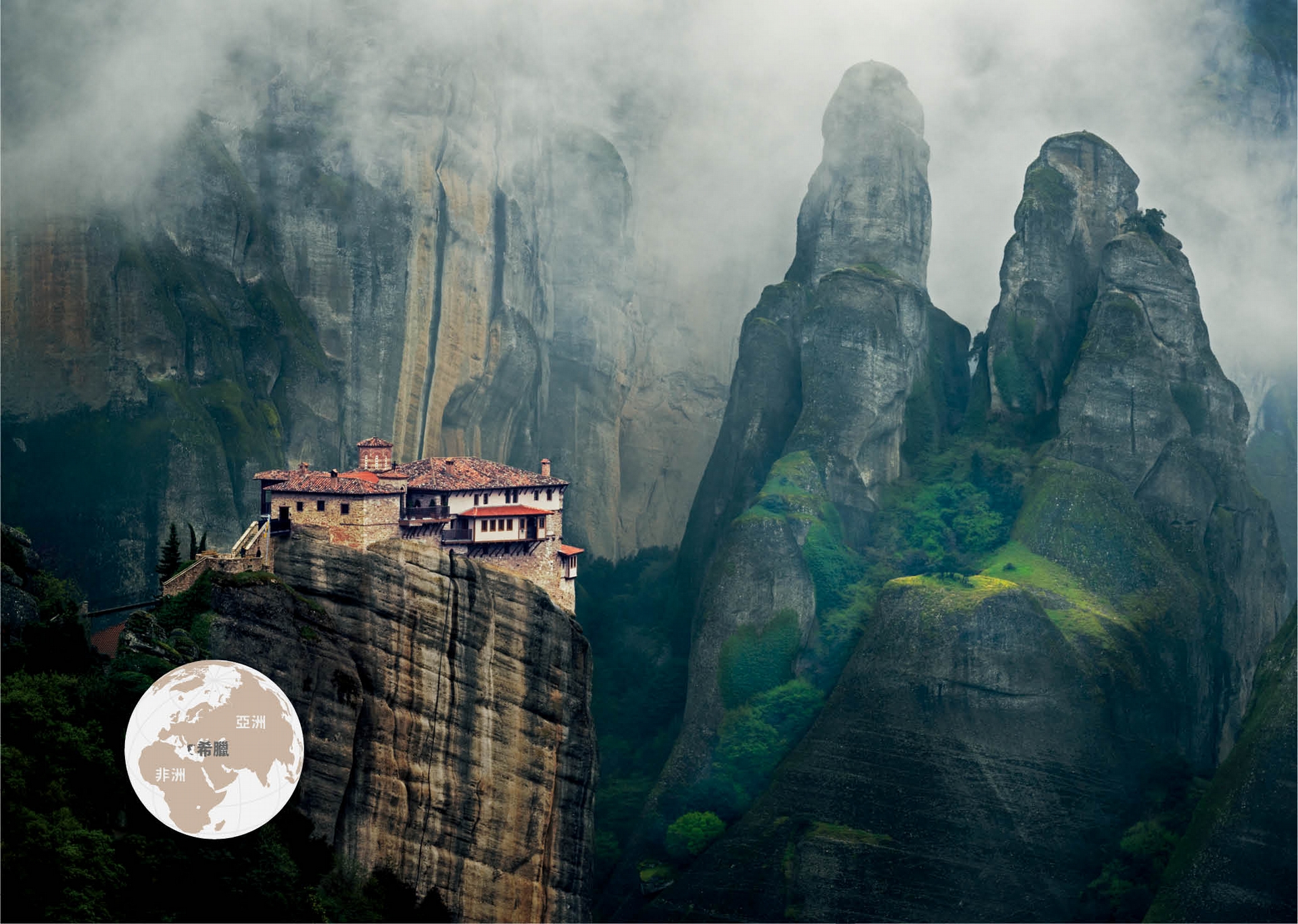 數字會說話|6000萬年:岩柱形成的估計年代。200階:抵達魯桑奴修道院需要走的臺階數。4小時:從雅典開車前往此處的時間。攝影: 凡塞林. 阿塔納索夫。NGM MAPS.