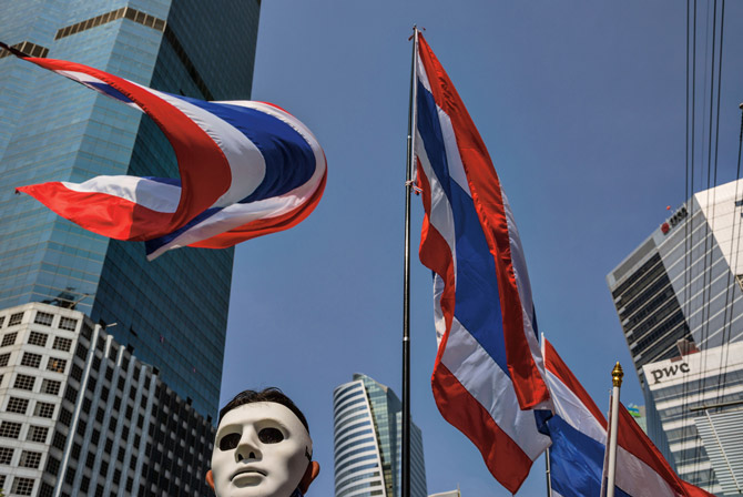 今年年初,上萬名抗議群眾在一場名為「封鎖曼谷」的運動中癱瘓了部分市區。路口被包圍,尖銳的哨音充斥在空氣中。就一場實際上是反民主的示威活動來說,真是蔚為奇觀。在2月2日全國大選的選前階段,這些抗議群眾阻撓候選人登記參選,並且干擾票箱運送。大選當天,他們用自己的身體封鎖投票所,並和試圖突破封鎖進入投票的民眾發生扭打。被迫關閉的投票所實在太多,憲法法庭因此做出爭議性的裁決,宣布選舉無效,置全國於危險和惡言相向的政治真空之中。