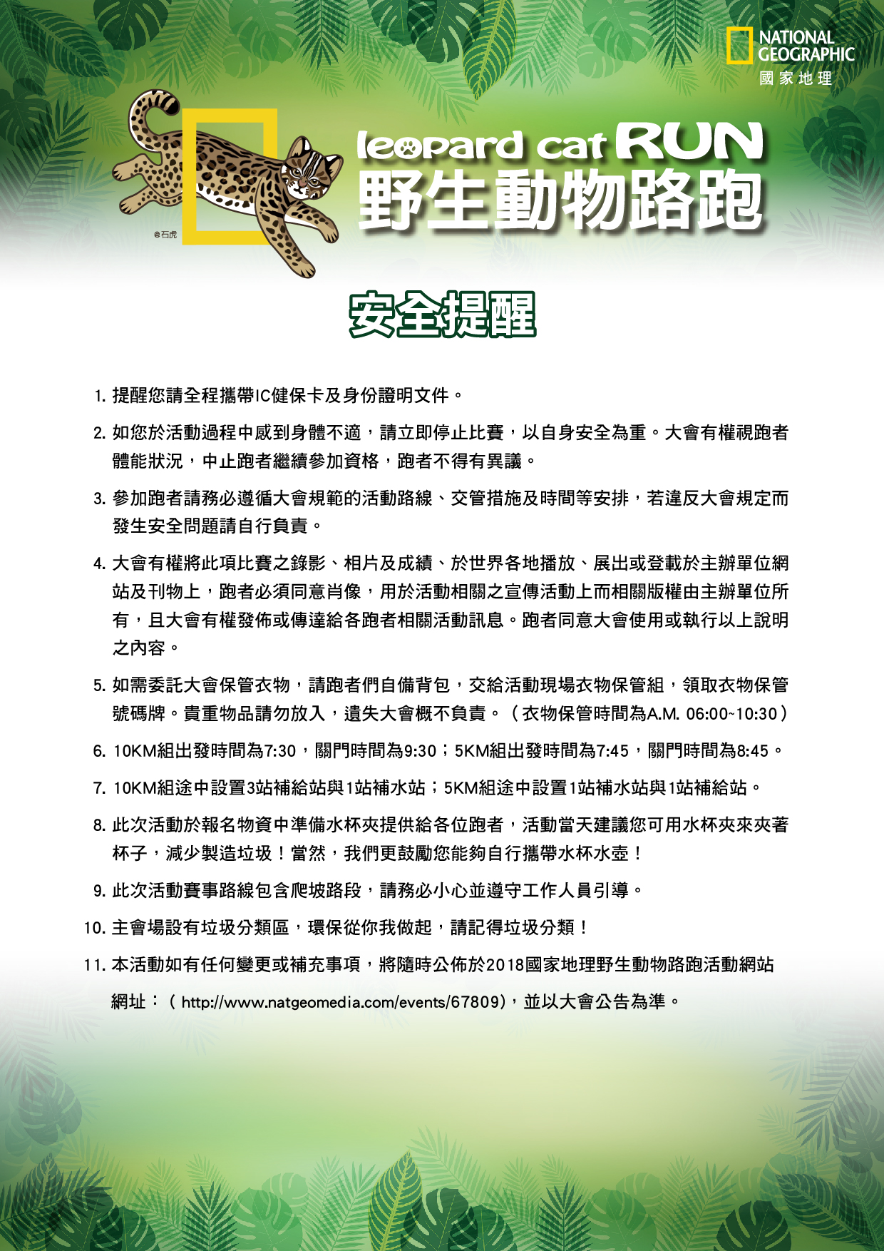 【賽前通知】2018國家地理野生動物路跑 - 國家地理雜誌官方網站|探索自然、科學與文化的最佳權 https://www.natgeomedia.com/environment/article/content-2240.html?utm_source=natgeomedia&utm_medium=article&utm_content=Share_2240