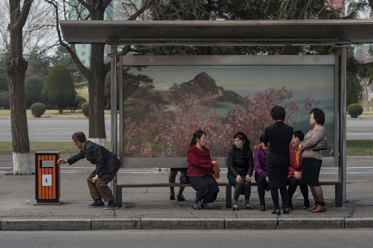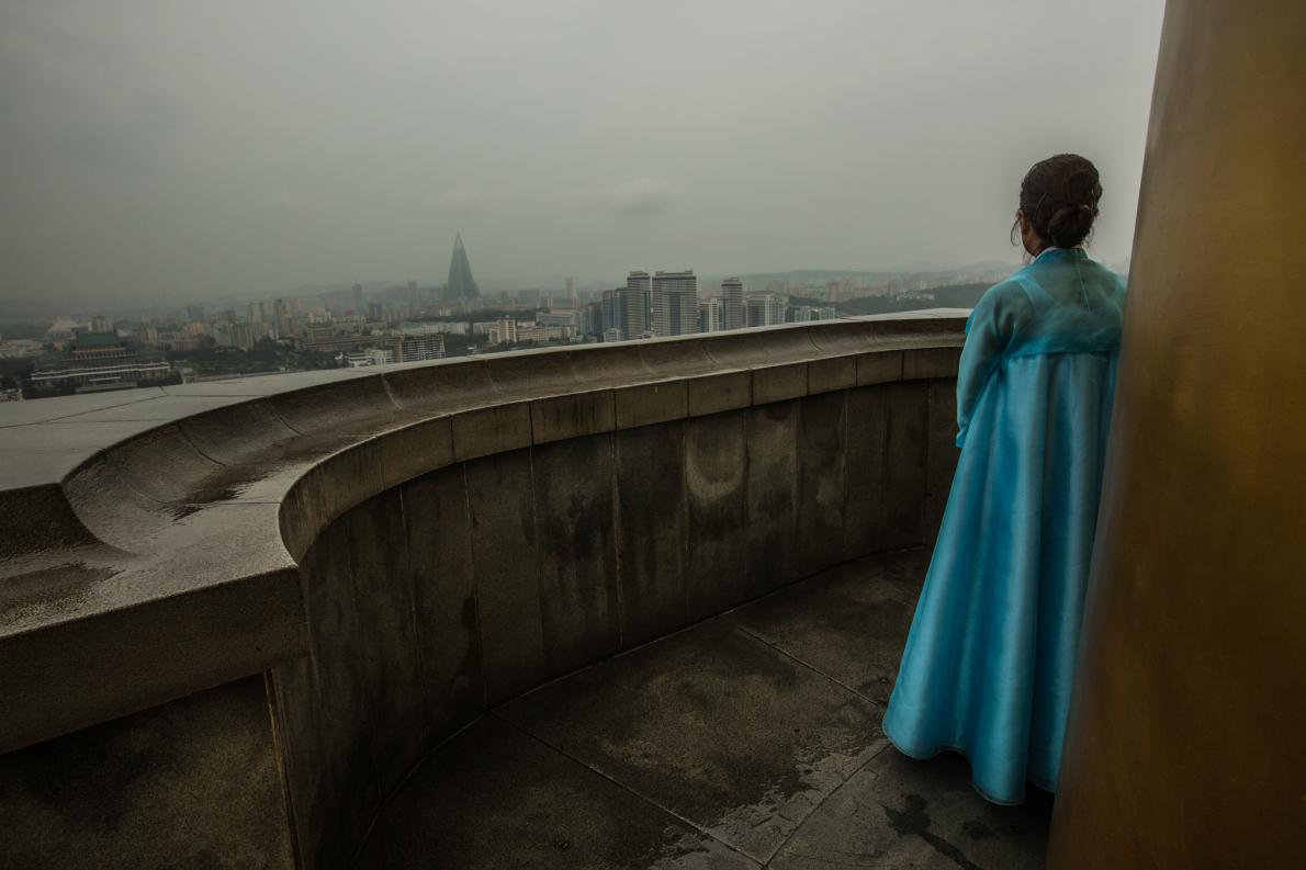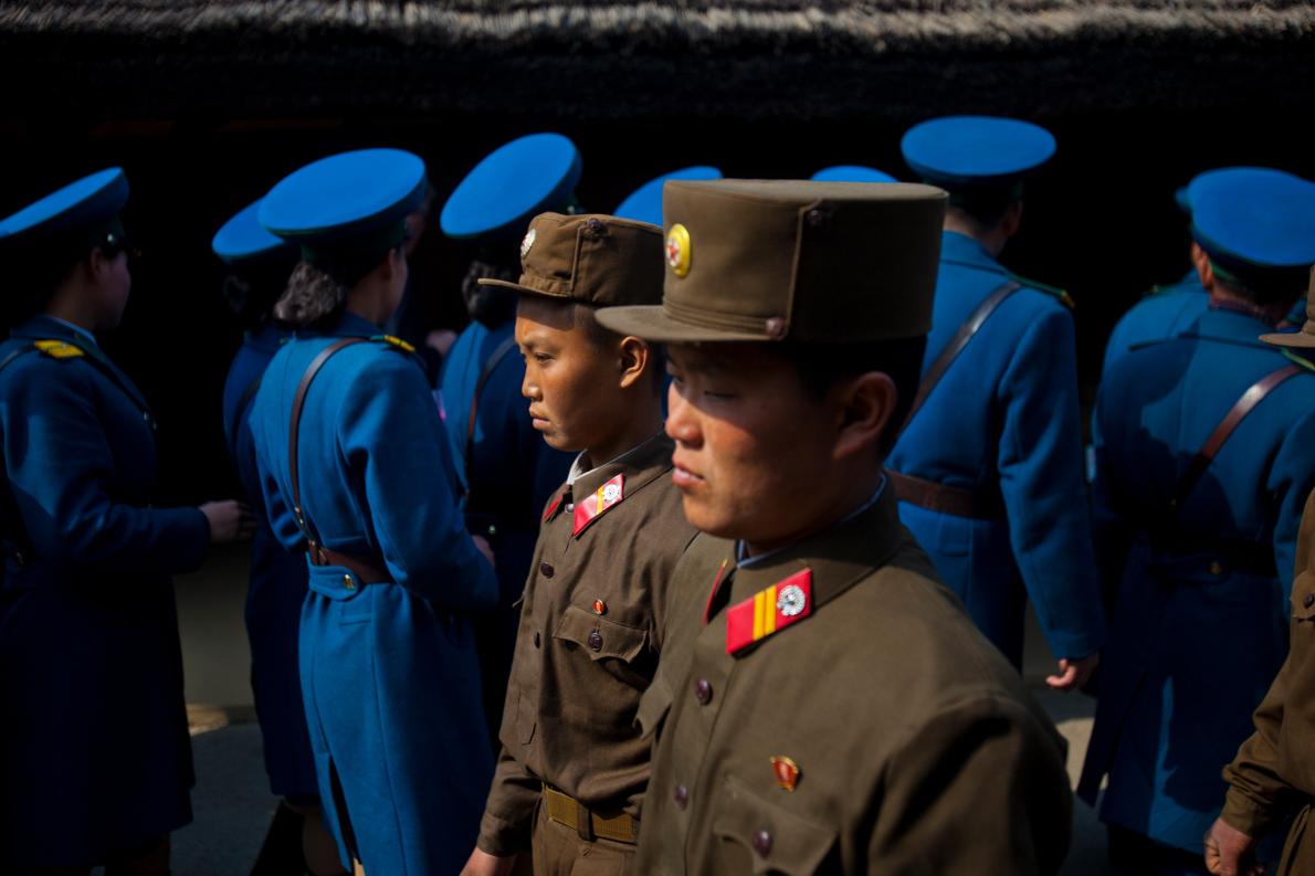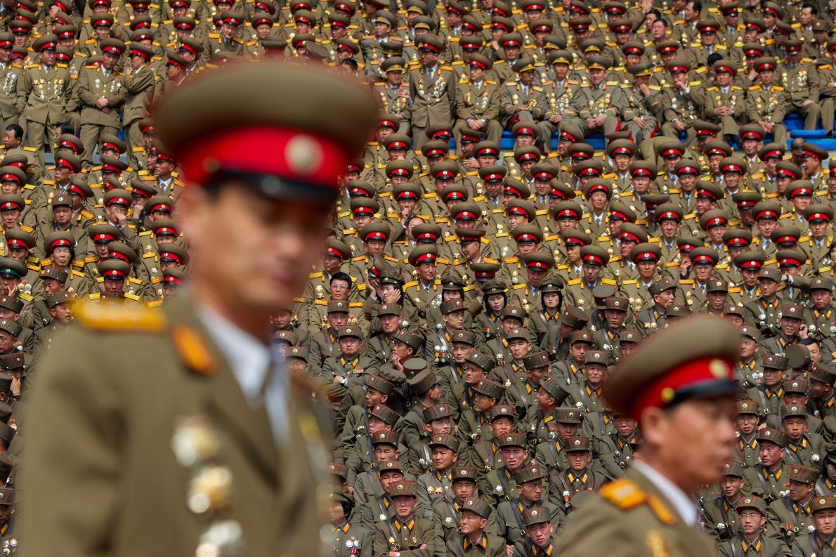 在秋夕(韓國中秋節)紀念活動上,北韓軍人在退伍軍人公墓上集會。 PHOTOGRAPH BY DAVID GUTTENFELDER, NATIONAL GEOGRAPHIC CREATIVE, AP