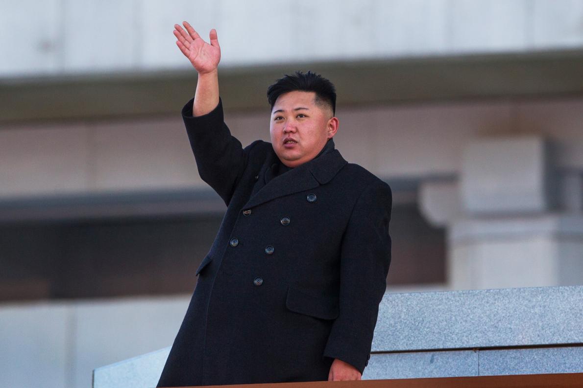 北韓新任領導人金正恩在錦繡山太陽宮殿閱兵後揮手。 PHOTOGRAPH BY DAVID GUTTENFELDER, NATIONAL GEOGRAPHIC CREATIVE, AP