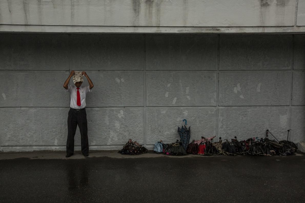 到處都有米老鼠:一位男孩爬上溜滑梯,旁邊的兒童腳上穿著直排輪。西方世界有些象徵(如男孩背包上的米奇)遍佈全世界,即使是封閉的北韓也可以看到。 PHOTOGRAPH BY DAVID GUTTENFELDER, NATIONAL GEOGRAPHIC
