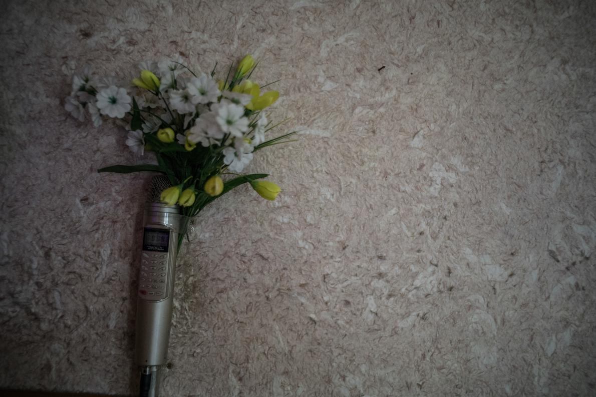 捉迷藏:古騰菲爾德說,北韓非常重視兒童表演藝術。在照片中,一位幼稚園的兒童準備表演一齣改編自童話故事的戲劇。 PHOTOGRAPH BY DAVID GUTTENFELDER, NATIONAL GEOGRAPHIC