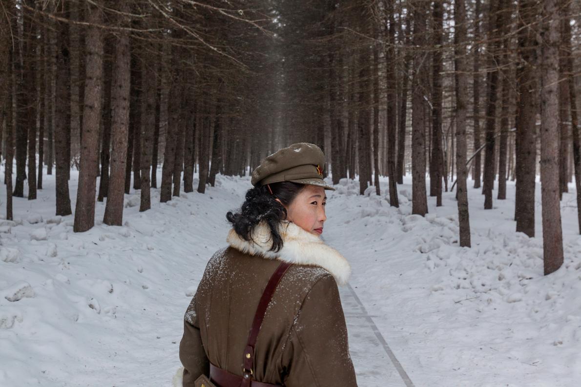 軍隊嚮導帶領觀光團進入神秘的白頭山。 PHOTOGRAPH BY DAVID GUTTENFELDER, NATIONAL GEOGRAPHIC CREATIVE, AP