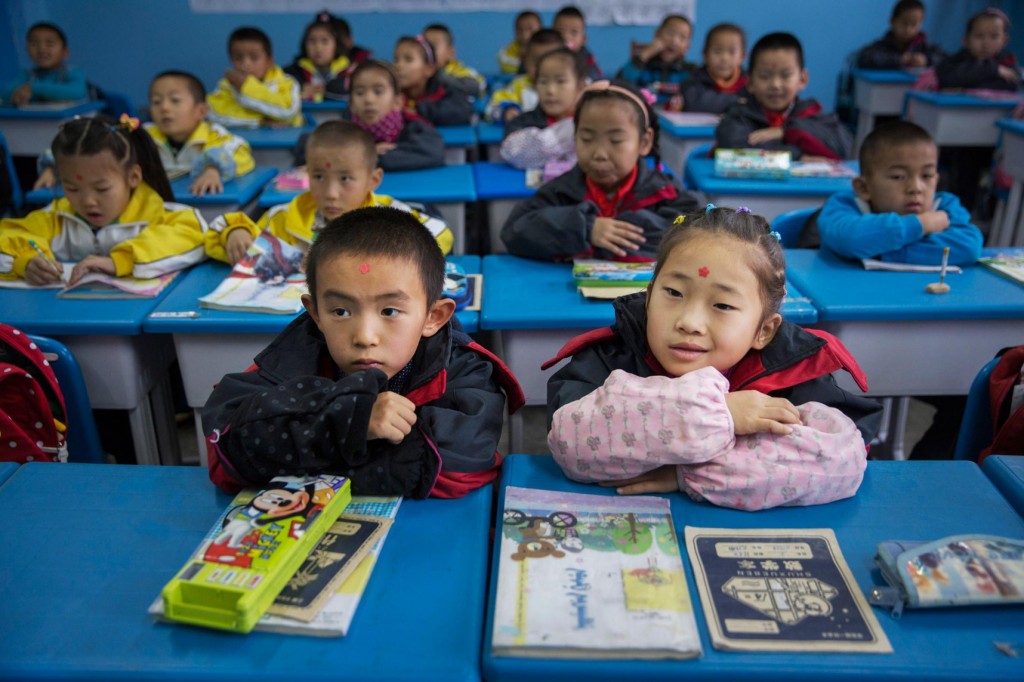 孩童在中國察布查爾錫伯自治縣的一所小學上課。 PHOTOGRAPH BY ADAM DEAN, THE NEW YORK TIMES/REDUX