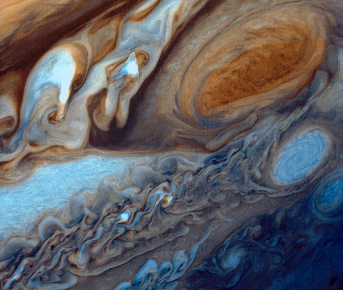 木星的大紅斑是個巨大的風暴,大小有地球的3.5倍。美國航太總署的航海家1號(Voyager 1)太空船在1979年飛掠木星時,拍攝了這張彩色特寫影像。 PHOTOGRAPH BY NASA''S GODDARD SPACE FLIGHT CENTER
