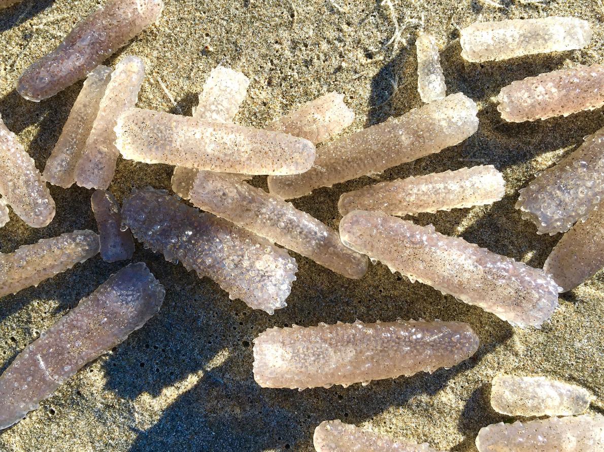 從今年春天開始,數百萬隻看起來怪異、原始、狀似水母,體長甚至可達60公分的發光海洋生物,開始黏在研究用的網具中,釣魚鉤上也見得到牠們的身影,更別提成串地被海浪衝上美國西岸了。這些粗短、果凍狀的生物叫做火體蟲(pyrosome),是錐狀的被囊動物。不過技術上來說,牠們是一群個蟲(zooid)的聚合體。火體蟲通常在熱帶出沒,分布最北的紀錄僅有一筆,曾在英屬哥倫比亞短暫出現過。但今年春天,牠們卻以前所未見的數量群聚在東太平洋,從俄勒岡州一路延伸到阿拉斯加灣。(譯注:個蟲指的是組合成群體﹝colonies﹞的單位生物,有些生物會群聚猶如一個個體般生活,例如僧帽水母與珊瑚都是一隻隻個體群聚而成,看似單一個體的生物。)