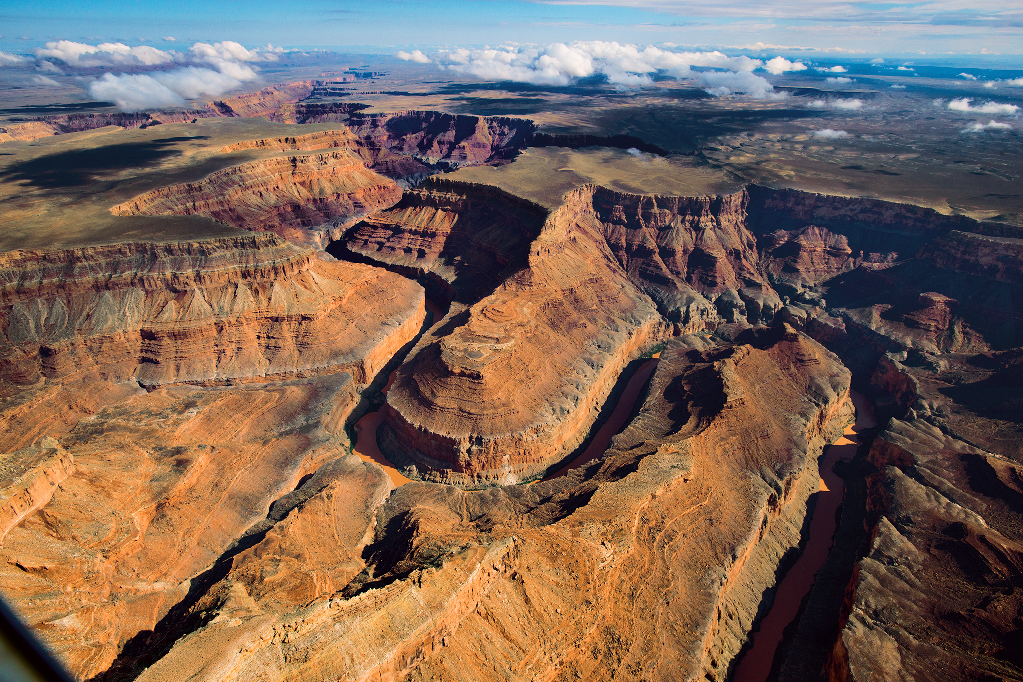 在這張大峽谷上游區域的空拍照中,可以看見納瓦荷族保留地的邊緣(位於圖中較遠處的那一側峽谷)。沒有一個觀景點可以讓人一窺大峽谷全貌。「大峽谷信託」的羅傑.克拉克說,大峽谷的宏偉掩蓋了它的脆弱。「我們最大的挑戰,在於讓人們了解這個地方事實上有多脆弱。」Photograph by Pete McBride