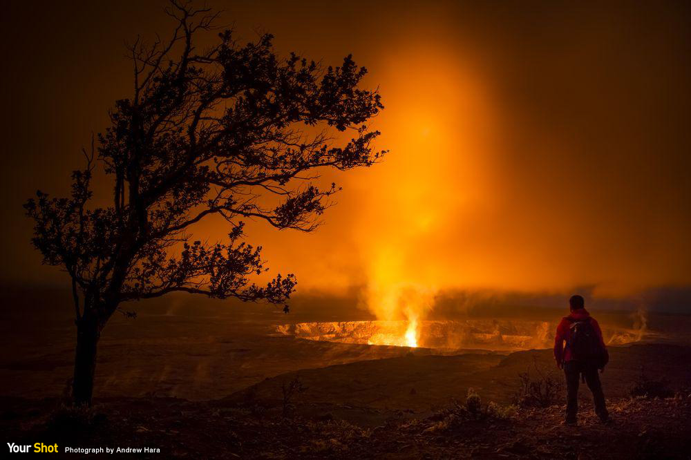 2015年5月,基勞厄亞火山的熔岩湖溢流3公尺,來到哈雷茂茂火山口的地面上。自從2008年火山口第一次爆裂後,這是我第一次從夏威夷火山國家公園火山博物館的烏維卡胡那峭壁看到難以置信的熔岩湖面。我很感恩自己生長於美麗的夏威夷島,住在距離活火山45分鐘路程的地方。(本作品來自〈你的觀點〉,同時收錄於每日精選App中20160222圖集。)