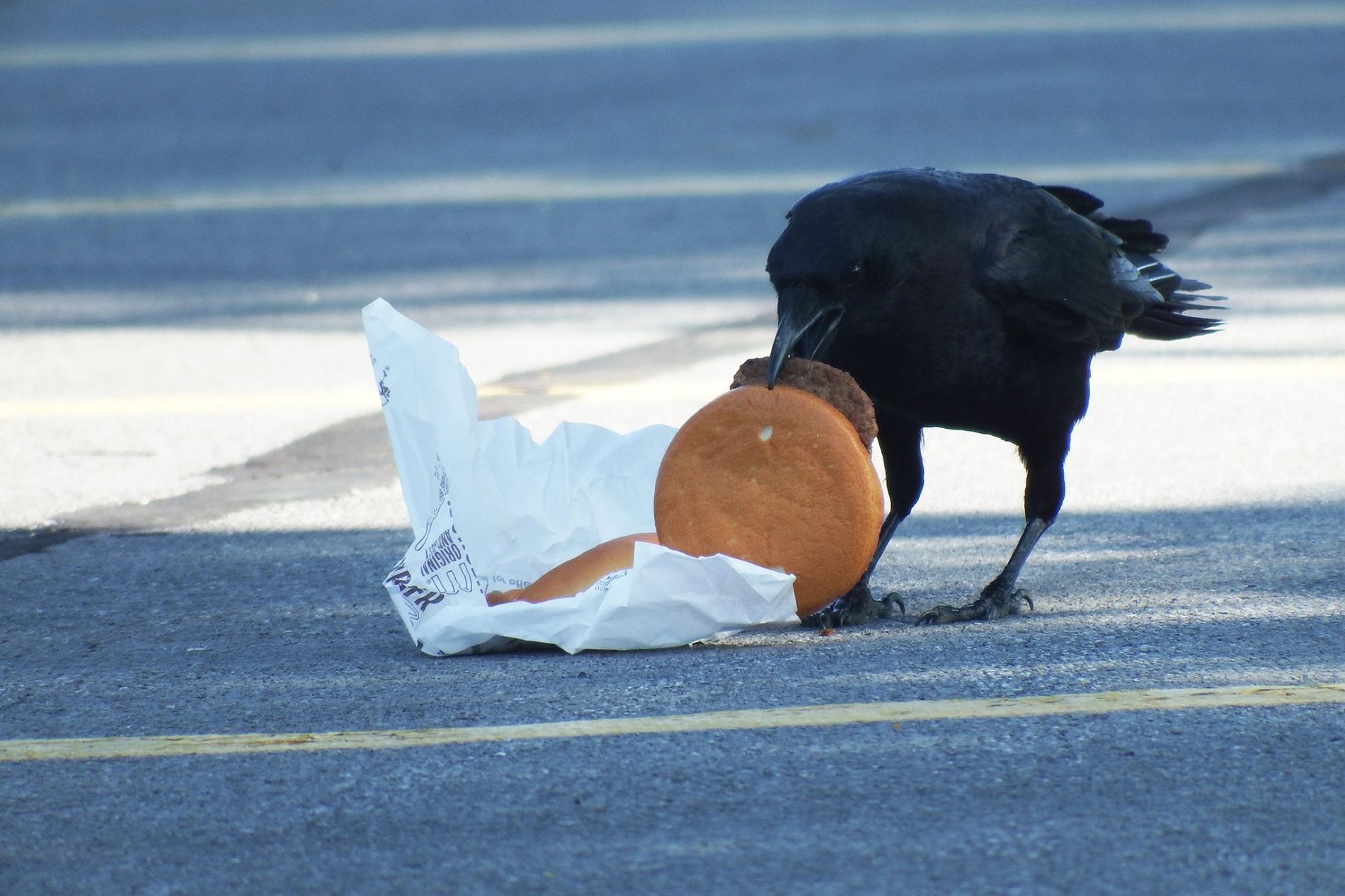 科學家餵烏鴉吃起司漢堡,以便觀察烏鴉吃人類的廚餘是否會影響存活率。PHOTOGRAPH BY ANDREA TOWNSEND