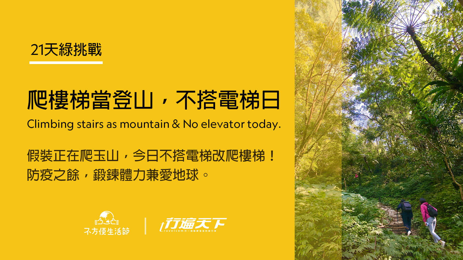 假裝正在爬玉山,今日不搭電梯改爬樓梯!防疫之餘,鍛鍊體力兼愛地球。