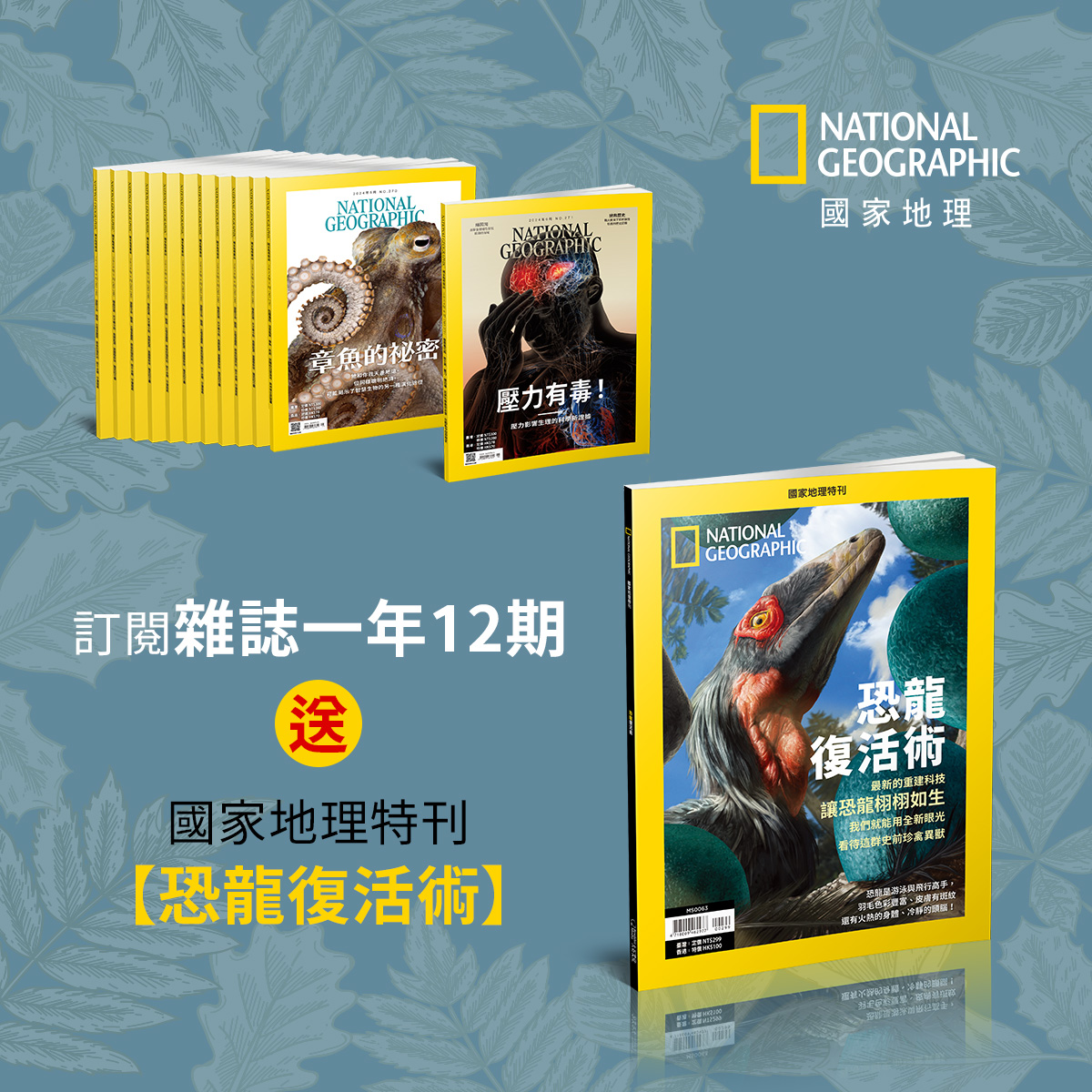 跑友訂閱國家地理雜誌(1年12期,定價3,600 元),限定贈送國家地理特刊《恐龍復活術》1本。