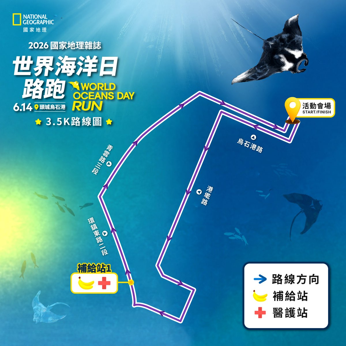 ※ 因考量氣候與疫情等不可抗力因素,主辦單位有調整活動時間的權利,所有活動相關最新消息以活動官方網站、國家地理雜誌官方FB粉絲專頁、2026國家地理雜誌世界海洋日路跑-筆記報名網之公告為主,敬請密切關注各項公告!