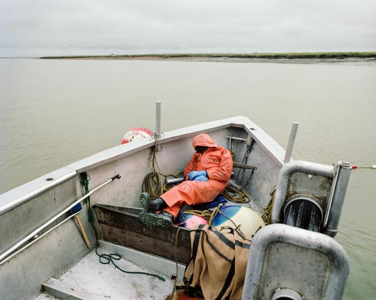 阿拉斯加的布里斯托灣上,累壞的漁夫在商用小漁船上打盹。 PHOTOGRAPH BY COREY ARNOLD
