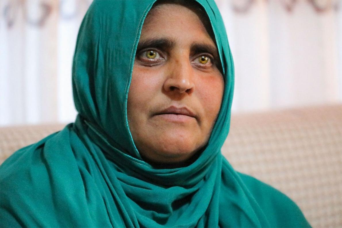 夏帕特.古拉銳利的綠眼睛使她立即成為家喻戶曉的人物。因為蘇聯入侵阿富汗,她6歲就成為孤兒,並與兄弟姊妹、祖母徒步逃難至巴基斯坦。攝影師史蒂夫.麥凱瑞(Steve McCurry)拍攝了她的照片,使她無意間成為象徵性人物,代表數千名逃至巴基斯坦的阿富汗難民所面臨的困境。她在家鄉被稱為「阿富汗的蒙娜麗莎」。