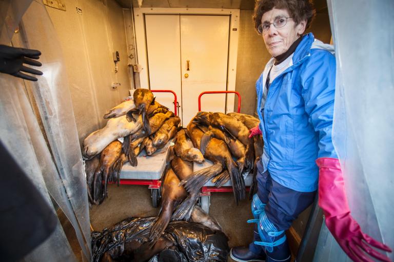救援人員及復健中心一直致力於幫助今年餓著肚子被海水沖上岸的3000多隻海獅寶寶。但是牠們並沒有全數救活。這些死去的小海獅將會被冷藏起來,等待在加州索薩利托(Sausolito)的海洋哺乳動物中心進行解剖。