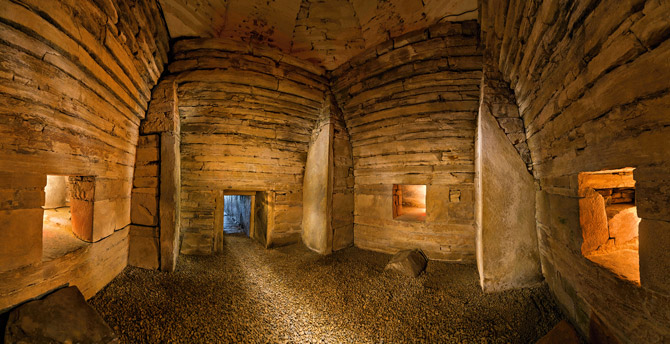奧克尼群島最大的墓葬是梅茲胡古墓,它的方位正好可以迎進冬至的夕陽餘暉。「奧克尼是幫助我們了解新石器信仰的關鍵,」發掘計畫的主持人尼克‧卡爾德說。