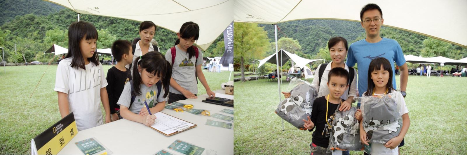 親子們完成報到後,立即展開「親子搭帳趣味賽」,由那山那谷工作人員解說如何使用帳篷搭帳的技巧與順序,藉由趣味競賽方式結合搭營說明,讓孩子們不僅了解其結構、協力與家長一同完成家庭住宿的帳篷,完成的前兩名親子組獲得國家地理《終極昆蟲百科》一本,作為最佳鼓勵!
