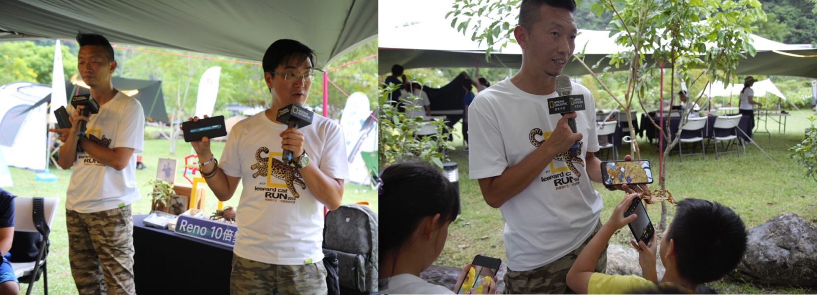 在中場休息後老師們分享在自然觀察中如何善用五感,從眼耳口鼻間尋找自然痕跡;並且運用先進的科技使用手機,讓自然觀察留下最重要的紀錄,活動期間OPPO提供了最新款的Reno 10倍變焦版手機,讓小朋友能在學習操作手機攝影中體驗到自然紀錄的要點。