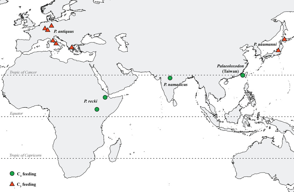 研究團隊分析古菱齒象牙齒琺瑯質的穩定碳同位素,發現臺灣曾有乾暖稀樹草原。圖片來源:擷取自《皇家學會開放科學》期刊