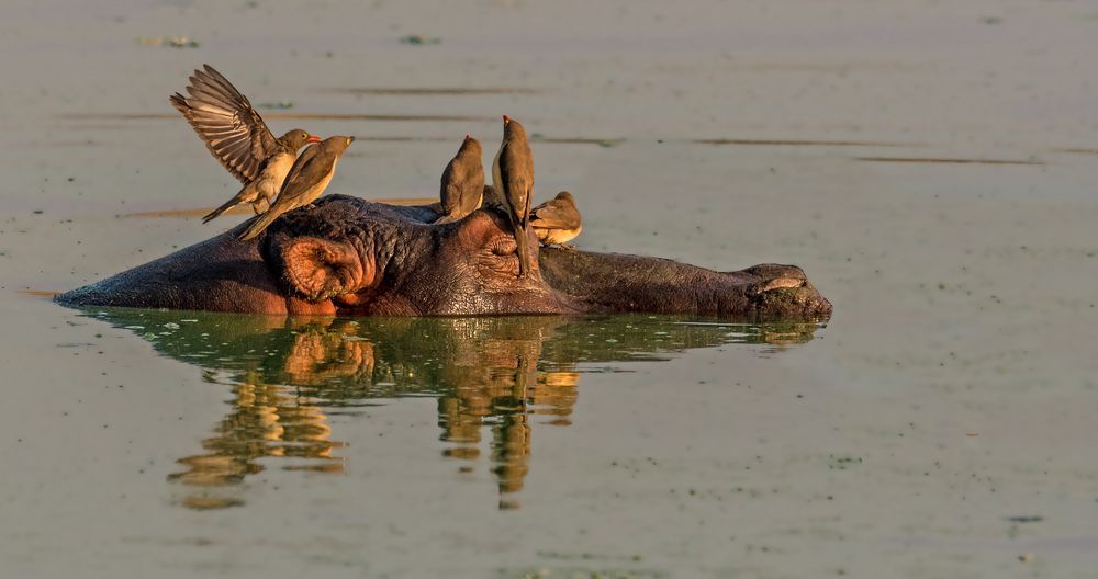 在河馬身上吃早餐