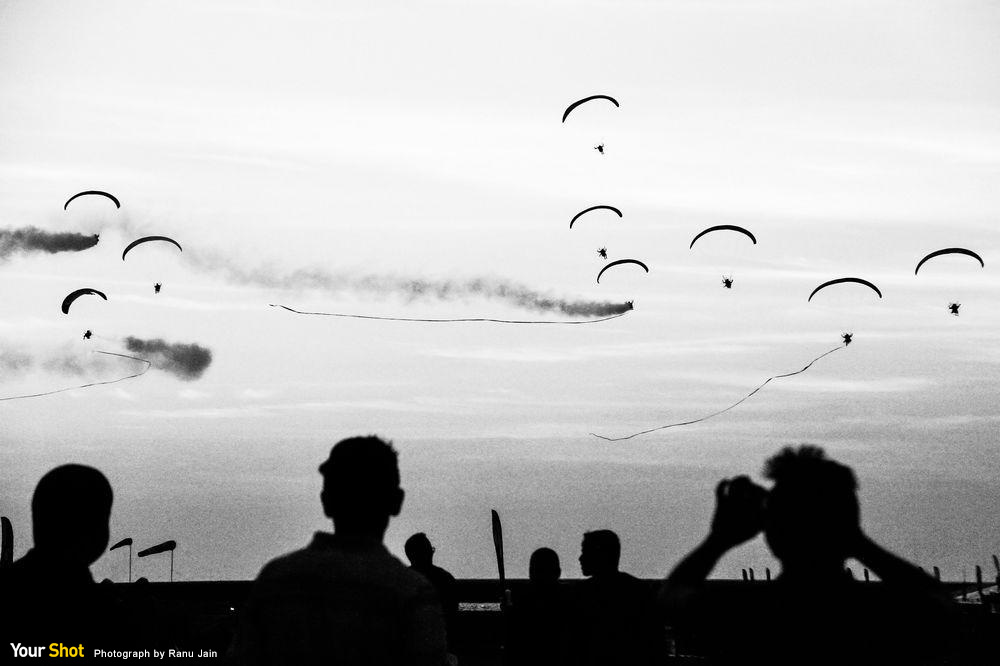 攝影:Ranu Jain 一群人正在觀賞飛行操演中的傘兵表演。(本作品來自〈你的觀點〉,同時收錄於每日精選App中20160307圖集。) 立即下載每日精選App收藏此影像 iPhone及iPad下載 Android手機下載 Andoird平板下載
