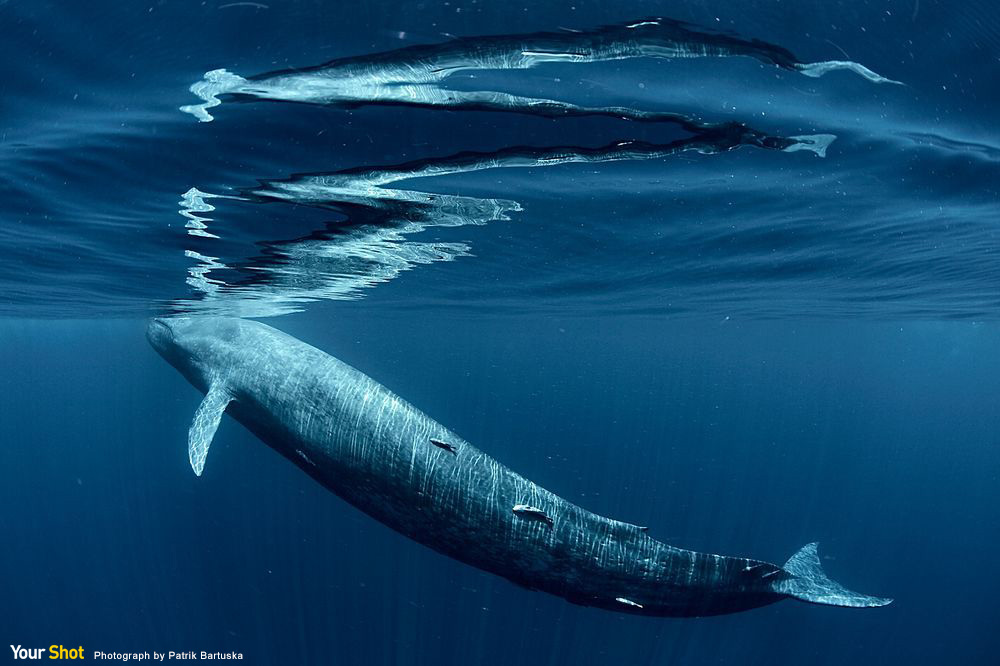 世上體積最大的動物正優游在富含浮游生物的印度洋海面下,相當獨特的一張照片。藍鯨雖然體型龐大、游速在鯨界也堪稱數一數二,牠們卻大多只在水下活動,僅偶爾短暫浮出海面,這增加了拍攝的困難度。 這張照片攝於離岸80公里處的開放水域,海深約3公里。(本作品來自〈你的觀點〉,同時收錄於每日精選App中20160703圖集。)