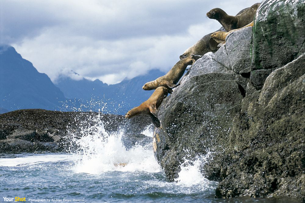 Photograph by Andres Perez Moreno 一群南美海獅正從用來歇憩的岩壁上跳進太平洋中,攝於智利艾申區的智利峽灣。(本作品來自〈你的觀點〉,同時收錄於每日精選App中20160608圖集。) 立即下載每日精選App收藏此影像 iPhone及iPad下載 Android手機下載 Andoird平板下載