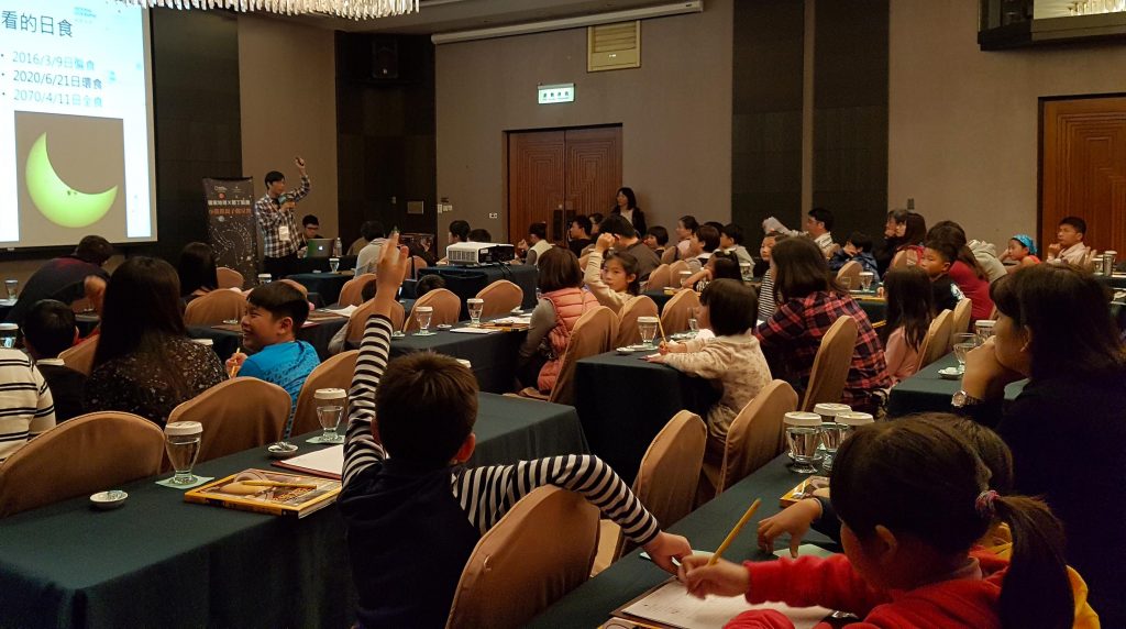 第一日親子在墾丁的度假氛圍中充分享受飯店內的設施,養精蓄銳後迎來翌日的觀星課程,每位學員帶著本次活動贈書教材《終極太空百科》踏入的教室,螢幕播放著《國家地理》雜誌製作的天文相關影片,準備開始進入天文的神祕領域。課程開始以小遊戲「星球尋找」讓小朋友們拋卻陌生感暖身,第一階段以了解「太陽」作為開場,敘述太陽的日蝕原理、從古代歷史建築看到以前人們是如何計算時間、崇拜太陽的文化……,豐富的內容讓孩子們對每天高掛的太陽有了更多的了解。