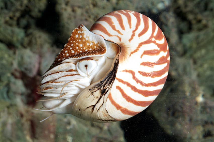 稀有的深海頭足類生物-鸚鵡螺是有名的活化石生物,具有獨特的氣室構造,如潛水艇可在深海中垂直移動。