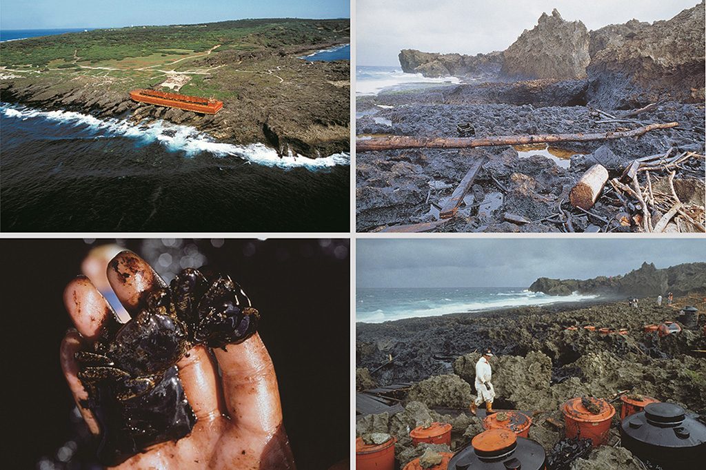 2001年阿瑪斯號貨輪擱淺在墾丁龍坑生態保護區,漏油事件造成海岸生態難以彌補的浩劫。