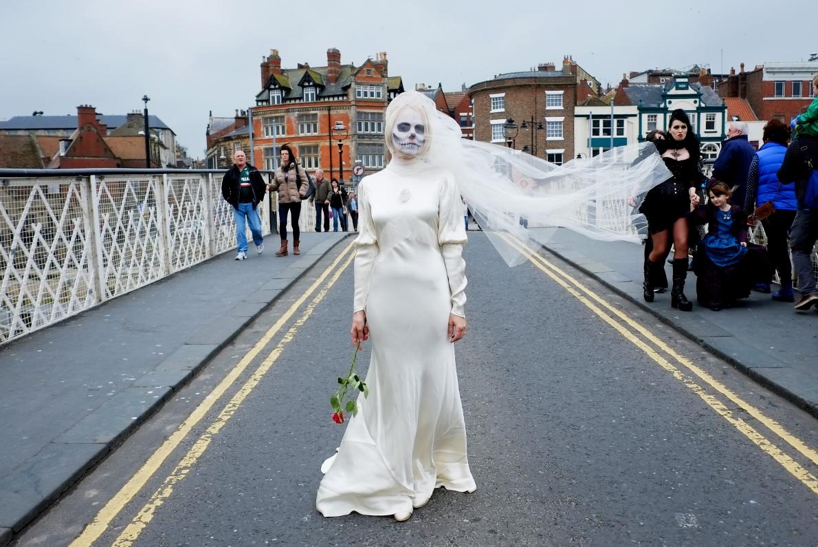 一位幽靈新娘使惠特比的街道增色不少。 PHOTOGRAPH BY IAN FORSYTH, GETTY IMAGES