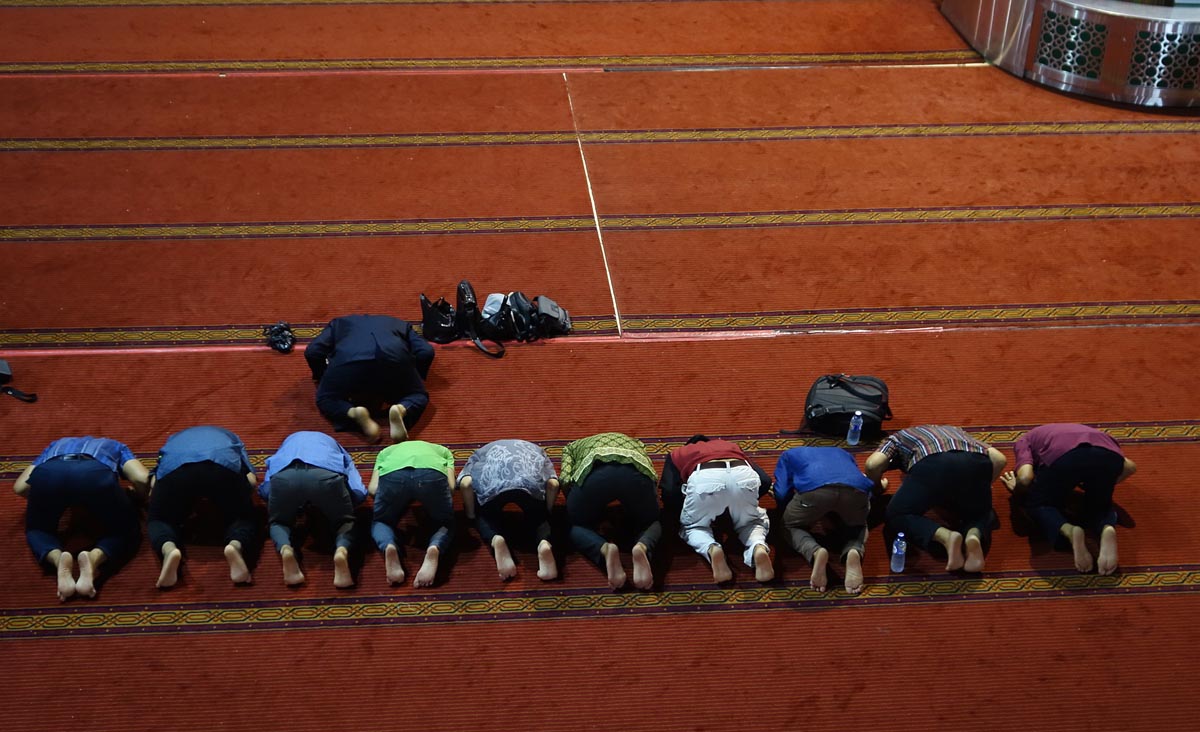 清真寺的宣禮在空中飄散著。印尼有高達90%的人口信奉伊斯蘭教,男士大多戴上白色小圓帽,女士則圍上各色面紗,看起來既神秘又優雅。帶著崇敬的心情進入雅加達境內最大的「伊斯蒂克拉爾清真寺」(Masjid Istiqlal),不分男女皆須洗滌手、臉、腳,衣履革新進入禮拜殿。由長老帶領,穆斯林信徒們排成一列,跪拜伏首於地,雙手、額頭碰地,禮和拜唯一的真主。