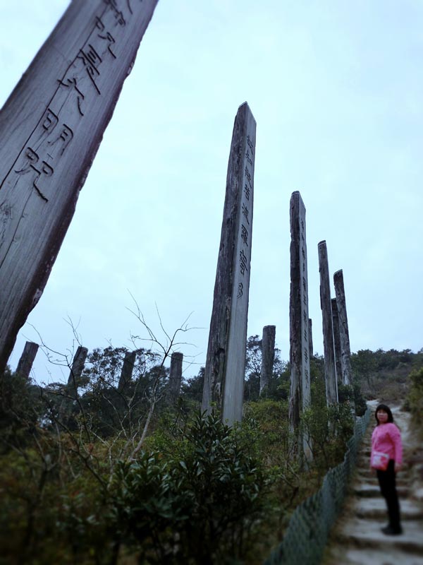 年少時香港電影的渲染,每個人都知道上大嶼山要去找大陸雞 ;時日變遷,當初那個大陸雞借住的家現在在賣豆腐花。不過「心經簡林」卻鮮為人知,初訪此地見到木樁雄壯寬闊的矗立於此,高約7米,上頭刻畫著「心經」的文字一共有38條半削木頭,看著一行行「心經」的字句心靈平靜,呼吸著芬多精閉上眼睛,像是看的見眼前的一切,「色即是空,空即是色」請拋開一切雜念,感受它想對你訴說的話語吧!