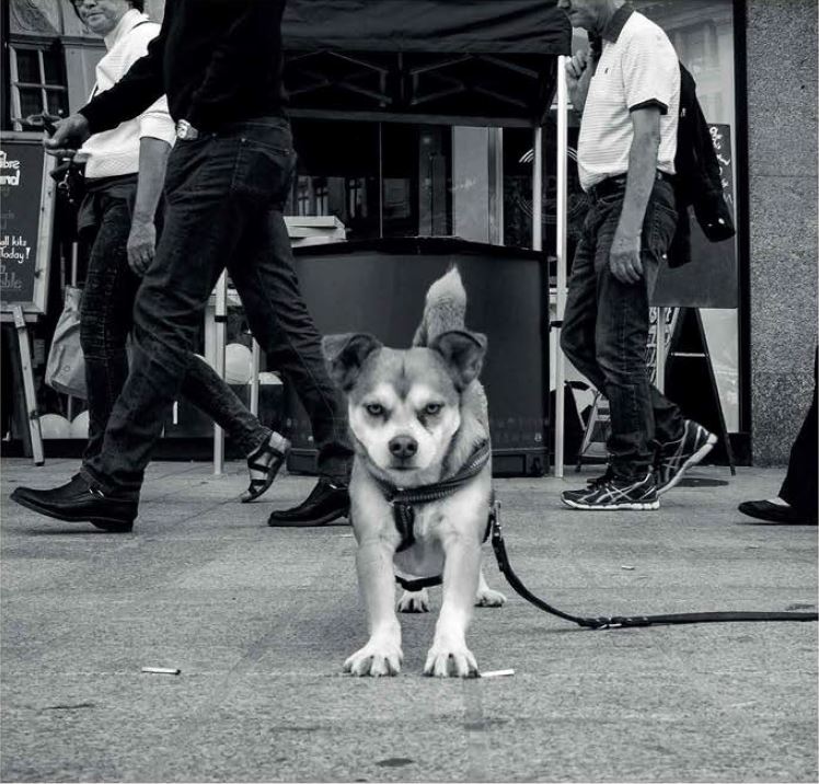 狗一向是街頭攝影的要角,而且可以成為非常討喜的主體。牠們不會拒絕拍照(通常來說),會直視你的雙眼,還常常表現出可愛的樣子。然而,如果只是上街隨意晃晃、隨機拍幾張狗的照片,這樣的作品恐怕不足以吸引任何人的興趣,也算不上真正的街頭攝影。你的照片必須要有「目的感」,要做到這點,最好的方法就是集中心力、專心拍一個主題。下列範例可以給你一些靈感: