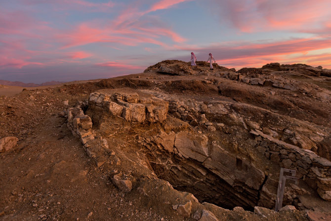 拜達綠洲的這口水井曾經在數百年間為駱駝商隊和朝聖的旅人提供水源。如今它只是個乾涸的大洞。民間傳說認為摩西曾經讓他的羊在這裡喝水。Photograph by John Stanmeyer